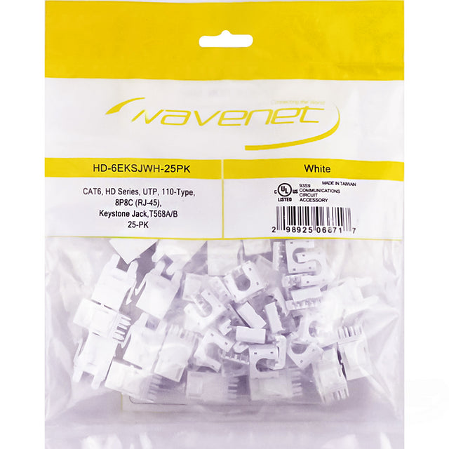 Cat6, Hdj-Series, Utp, 110-Type, 8P8C, Rj-45, Keystone Jack,T568A/B, White, 25-Pack