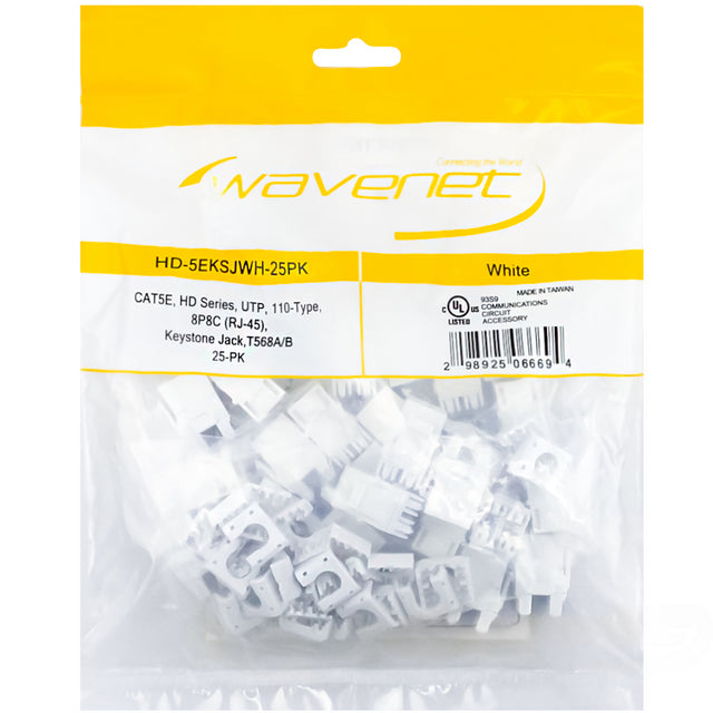 Cat5E, Hdj-Series, Utp, 110-Type, 8P8C, Rj-45, Keystone Jack,T568A/B, White, 25-Pack