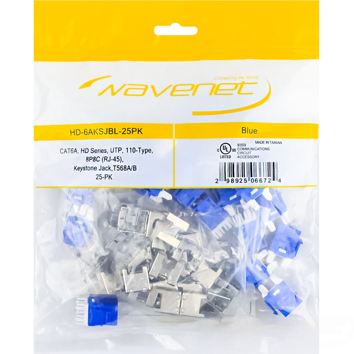 Cat6A, Hdj-Series, Utp, 110-Type, 8P8C, Rj-45, Keystone Jack, T568A/B, Blue, 25-Pack