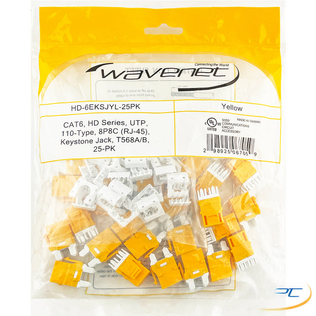 Cat6, Hdj-Series, Utp, 110-Type, 8P8C, Rj-45, Keystone Jack,T568A/B, Yellow, 25-Pack